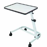 De Able2 Bedleestafel Wit is een verrijdbare en in hoogte verstelbare tafel die je eenvoudig naast een bed of stoel plaatst. Het tafelblad is kantelbaar, waardoor je comfortabel kunt lezen, schrijven of eten. Door de opstaande rand blijven boeken of spullen stabiel liggen, ook bij schuine stand. De tafel is voorzien van vier wieltjes, waarvan twee met rem, zodat hij stevig op zijn plek blijft staan. Deze bedleestafel is geschikt voor gebruik in huiselijke omgeving of zorginstellingen en is gemakkelijk schoon te maken. Geschikt voor bedden met een minimale ruimte onder het frame vanwege de lage voet. Let op of het onderstel past bij jouw bed of stoel.